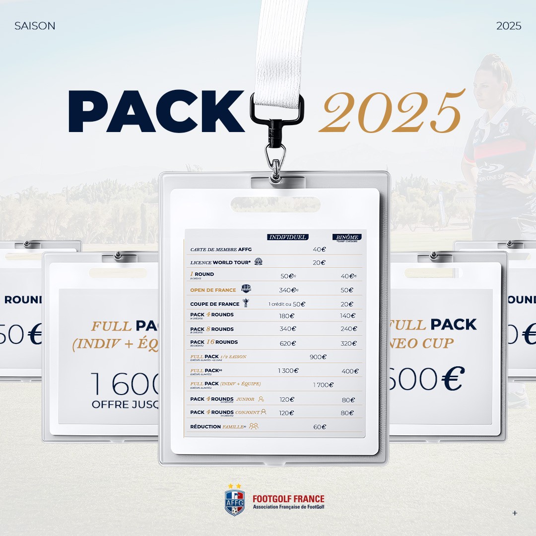 Cette année encore, de nombreux Packs seront à votre disposition. Avec l'apparition du Full Pack Néo Cup, l'accent sera mis sur le développement du FootGolf à destination des nouveaux joueurs, des femmes et des enfants !